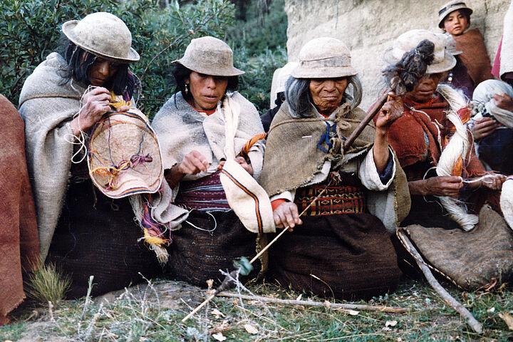 Als wir, nachdem wir in der Nähe von Quito und am Vulkan Cotopaxi begonnen hatten, endlich in La Moya ankommen, freuen sich die Frauen, dass nun auch sie in die Filmarbeit einbezogen werden, wie in einer Szene, wo sie Spindeln drehen und shigras, Tragetaschen, nähen. Untätige Frauen sieht man nicht. Noch heute sind sie auf Schritt und Tritt dabei, die Spindel zu drehen. Da viele Männer als Fremdarbeiter in den Städten oder im Amazonasgebiet den Lebensunterhalt verdienen müssen, liegt die Hauptlast der Familie bei den Frauen. Wenige von ihnen sprechen Spanisch und auch die älteren Männer nicht.