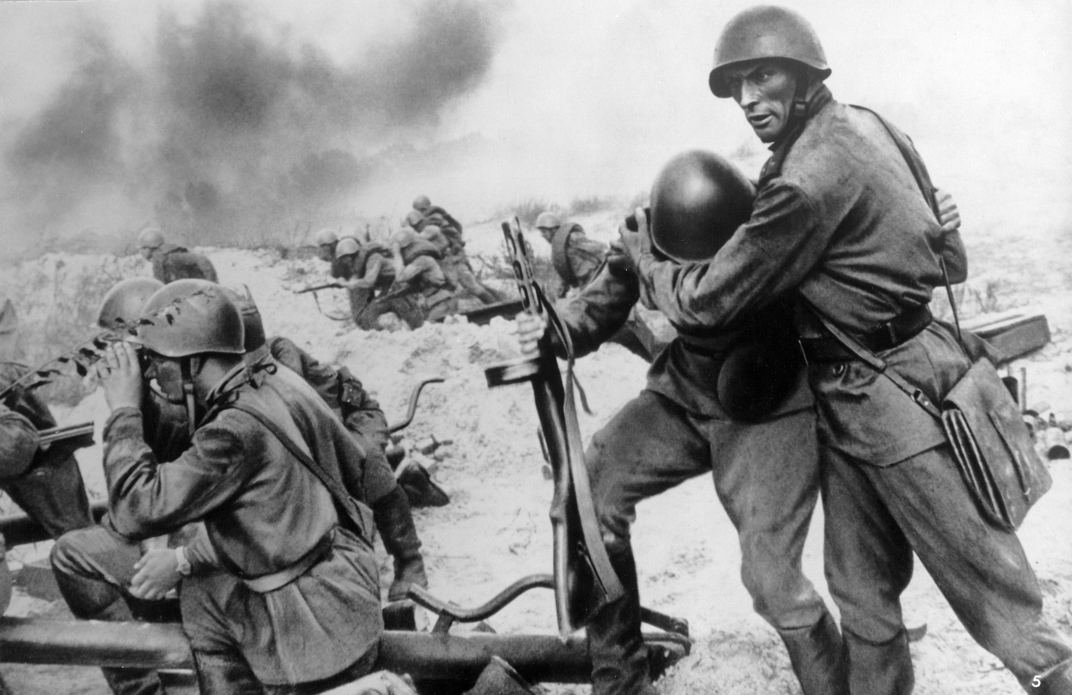 Im Sommer 1943 sind im Kursker Bogen auf beiden Seiten drei Millionen Soldaten, 5.000 Panzer und 3.000 Flugzeuge konzentriert. Am Morgen des 5 Juli bricht die Schlacht los und verwandelt das gebiet in einen höllischen Feuerbogen, in dem die Deutschen Divisionen unter gewaltigen Verlusten stecken bleiben. Die Rote Armee geht erfolgreich zum Gegenangriff über und stößt unaufhaltsam in Richtung Orjol vor. - Der endgültige Ausgang der Schlacht fällt in der kleinen Ortschaft Prochorowka, in der sich am 12. Juli faschistische Panzerdivisionen und Panzereinheiten der Roten Armee in der größten Panzerschlacht des Zweiten Weltkrieges gegenüber stehen. - Mit dem Sieg der sowjetischen Truppen begann die Wende im Verlauf des zweiten Weltkrieges.