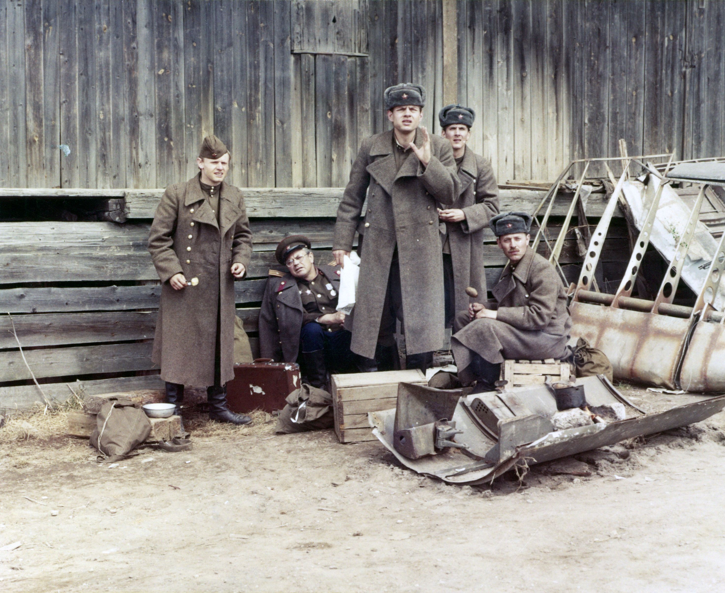 Ein Kriegsgefangenenlager in der Sowjetunion. Vier junge Deutsche tauschen ihre Uniform, um an der Seite des ehemaligen Feindes für eine schnellere Beendigung des Krieges zu kämpfen. In sowjetischer Uniform fahren sie mit ihrem Betreuer im Zug an die Front. Den Mitreisenden bleibt nicht lange verborgen, dass sie Deutsche sind. Für sie ist es nicht einfach, mit der neuen Identität fertigzuwerden. Im Lager wurden sie von einigen Kameraden als Verräter bezeichnet. Das Verhalten der sowjetischen Soldaten ihnen gegenüber ist unterschiedlich. Einige sind unsicher, andere betrachten sie als Gleiche. An der Front angekommen, müssen sie sich entscheiden, ob sie einen Auftrag hinter den deutschen Linien übernehmen. Einer bleibt zurück. Die anderen gehen in den Wald, um sich auf den Partisanenkampf einzustellen, und begegnen plötzlich abgeschossenen deutschen Fliegern. Sie sind nicht fähig, auf die Deutschen zu schießen; ihren Betreuer Kolja kostet dies das Leben. Sein Tod löst große Betroffenheit bei ihnen aus. In der Zwischenzeit haben sich der zurückgebliebene Deutsche und die sowjetische Funkerin Swetlana ineinander verliebt. Sie hält zu ihm, obwohl er von einigen Russen kritisiert wird. Schließlich entscheidet auch er sich für den Einsatz.