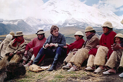 In der Ausstellung spiegelt sich Simons enge Verbundenheit zum Land und den Menschen in den indigenen Gemeinden La Moya und Totorillas wider, die seit den Dreharbeiten für DIE BESTEIGUNG DES CHIMBORAZO (1988/89) besteht. Während seiner Recherchen ließ sich Simon von ecuadorianischen Filmemachern beraten. Er sah sich Filme von ihnen an und traf sich mit indigenen Gemeinschaften, um ihre Beteiligung am Film zu besprechen. Er engagierte indigene Laien-Darsteller, und ein ecuadorianisches Filmteam war an den Dreharbeiten beteiligt. Für den Regisseur und sein Team war es als Voraussetzung für die Filmarbeit selbstverständlich, dass man allen Beteiligten und der indigenen Kultur mit Respekt begegnet. Insgesamt 25 Mal reiste Simon bisher in das Land. Er hat dort indigene Patenkinder und viele Freunde. Eine tiefgreifende Beziehung, die in der Ausstellung spürbar wird. Die DEFA-Stiftung dankt Rainer Simon herzlich für die Bereitstellung der Fotos und das Verfassen der Texte.