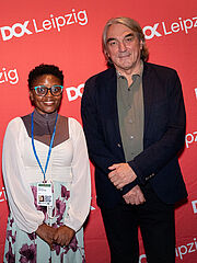 mit Jurymitglied Gerd Kroske nach der Preisvergabe. Foto: DOK Leipzig, Sophie Mahler