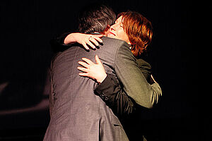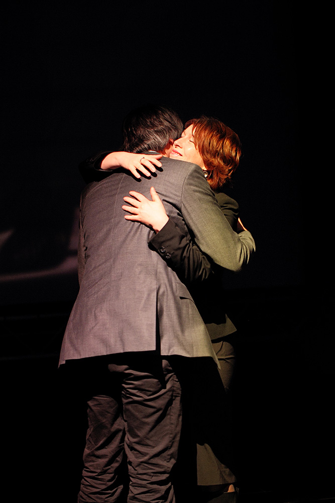 Laudatorin Linda Söffker umarmt David Sieveking. Fotografen: Reinhardt & Sommer