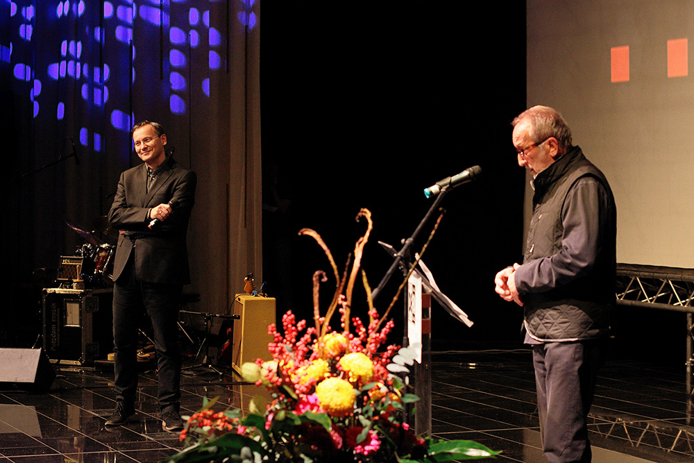 Ralf Schenk gratulierte Lebenswerkpreisträger Günter Reisch. Fotografen: Reinhardt & Sommer